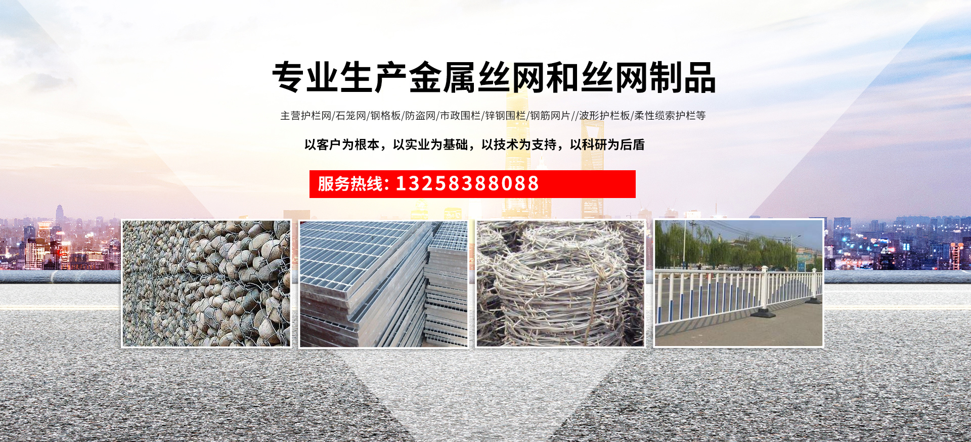 成都宏旭金屬絲網(wǎng)制造有限公司主營護(hù)欄網(wǎng)系列、石籠網(wǎng)系列、鋼格板、防盜網(wǎng)、市政圍欄、鋅鋼圍欄、鋼筋網(wǎng)片、聲屏障系列、波形護(hù)欄板、柔性纜索護(hù)欄、SNS邊坡防護(hù)網(wǎng)等其他絲網(wǎng)類產(chǎn)品。特殊規(guī)格可加工定做,也可根據(jù)客戶來圖來樣定做。自創(chuàng)業(yè)以來,公司一直堅(jiān)持市場為導(dǎo)向,以客戶為根本,以實(shí)業(yè)為基礎(chǔ),以技術(shù)為支持,以科研為后盾,集科研、生產(chǎn)、經(jīng)營為一體,不斷研制開發(fā)新產(chǎn)品,開拓市場,走綜合發(fā)展之路。多年來,公司憑借過硬的質(zhì)量,良好的信譽(yù)、優(yōu)質(zhì)的服務(wù)、合理的價格,贏得了市場和商家的一致好評。